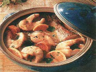| Sastojci: 1,2 kg morske i slatkovodne ribe,1 grančica celera, 6 grančica peršuna, 1 mala grančica majčine dušice, 1 lovorov list , 4 dag maslaca, 1,5 l riblje supe, 2 žlice slatke pavlake, 2 žumanca, 12 kriškica dugačkog tankog hleba, 1 neprskani limun, 4 dag maslaca, so i biber. Priprema: Tokom pripreme ovog flamanskog specijaliteta poskidajte peršunove listiće pa njihove štapke, lovorov list i grančice majčine dušice i celera zavežite u svežnjić. Sve ribe očistite i narežite na veće komade. Pristavite ih u supu sa svežnjićem začinskog bilja i 4 dag maslaca. Poklopite. Kad provri, smanjite temperaturu i kuvajte 15 minuta. U međuvremenu nasjeckajte peršunovo lišće. Oprani limun narežite na tanke ploškice. Hleb popržite u tosteru pa premažite s 4 dag maslaca. Iz supe izvadite svežnjić. U smjesu pavlake i žumancaka pomalo umiješajte 3 kašičice vrele supe pa umiješajte u supu. I dalje je miješajte na niskoj temperaturi da se jelo zgusne, ali ne smije provrijeti. Po potrebi dosolite i još pobiberite. Pospite peršunom, dodajte limun i poslužite s prepečencem. |