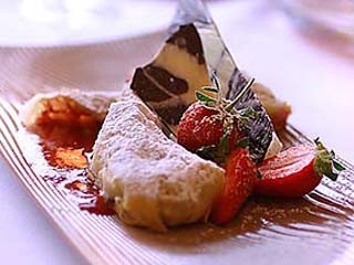 | SASTOJCI: 0,50 dag brašna, 0,2 dl ulja, 2 jaja, prstohvat soli, bademi po želji, limunova korica, šećer i vanilin šećer po potrebi, vode po potrebi, 2 kg jagoda . PRIPREMA: Zamijesiti tijesto, premazati uljem i ostaviti da stoji 30 minuta. Nakon pola sata, tijesto tanko razvući na stoljnjaku koji je posut brašnom. Rubove tijesta posipati nasjeckanim bademima te staviti oprane komadiće jagoda. Sve začiniti šećerom, vanilinim šećerom te limunovom koricom. Zarolanu tanku savijaču peći 15 minuta na 180 stepeni. Poslužiti toplo s umakom od jagoda ili sladoledom od vanile. |
