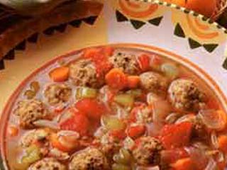 | Sastojci: 450 g mljevene junetine, 4 jaja, 1/4 malog crvenog luka, usitnjenog, 4 kašičice nasjeckanog korijandra,1 kašičica origana,1 kašičica soli, 1/2 kašičice svježe samljevenog bibera, 7 šoljica juneće supe,1 konzerva paradajza, 2 kašičice šećera, 1 kašičica crvene paprike, 2 šargarepe, nasjeckane, 2 celera, pažljivo nasjeckana, 1 nasjeckani luk, 1 list lovora Priprema: U zdjeli izmiješajte junetinu, jaja, luk, korijandar, origano, so i biber. Pokrijte i ostavite u frižideru 1 sat. U lonac ulijte supu, dodajte paradajz, šećer, crvenu papriku, šargarepu, celer, luk i lovorov list i lagano miješajte drvenom varjačom. Pustite da prokuva pa smanjite tako da lagano vri.Izvadite meso iz frižidera i formirajte male loptice. Polako ubacite u lonac sa supom, poklopite. Pustite da lagano kuva dok se povrće ne smekša, nekih 20 minuta. Izvadite lovorov list. Probajte supu i ako je potrebno dodajte začine. Odmah poslužite. |